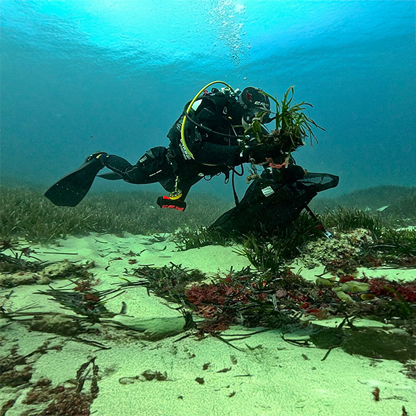 La plantación de posidonia en Fornells, todo un éxito: sobrevive más del 99%